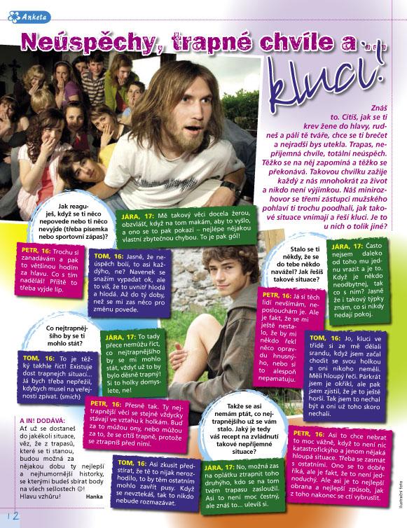 V redakci je změna. Jaká? Nejen to vám prozradí říjnové číslo. V rozhovoru si povídáme s olympijskou střelkyní Lenkou Maruškovou-Hykovou, mimo jiné o Pekingu. Pokud chcete soutěžit o luxusní péči v kadeřnickém studiu, nepřehléděte rubriku Inspirace. I kluci se někdy potýkají s trapasy stejně jako my holky. Zajímalo nás, jak to prožívají a co považují za největší trapas. Pokud si myslíte, že by se vám hodila nějaká nová a originální ozdoba na krk, nechte se inspirovat v IN tvoření. Znovu o olympiádě, ale tentokrát sborové, nám napsala Anička, jedna ze zpěvaček ve výtězném sboru Iuventus, gaude! Že se nemusí cvičit jen v tělocvičně, nám znovu ukáže Maruška. Na další stránce se dozvíte, že vytvořit loutkový večerníček či pohádku je kus pořádného řemesla. Víte, že i zvířata mají své rekordy? Představujeme vám ty nejzajímavější. Nenechte si ujít nový film v kině a křesťanský hudební festival VOX 008, více v rubrice Pozvánka. A je toho mnohem víc! Ani tentokrát nechybí spousta soutěží a vtipů.